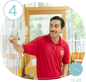 25分間の比較的短い間隔で1日に5コマの教育内容に取り組んでいます。