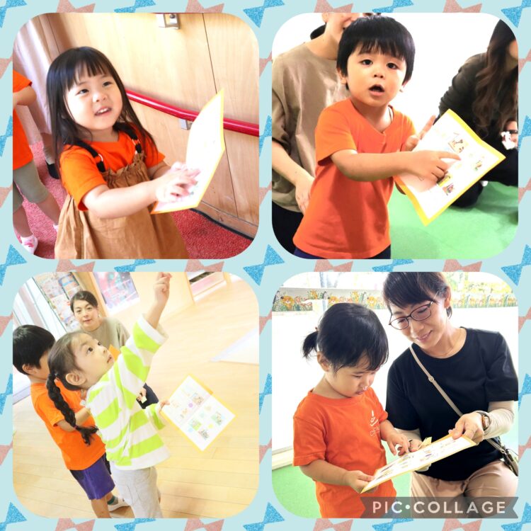 長い廊下を歩いたり、階段を下りたり上がったりとカードについている写真の場所を探しながら幼稚園の色んな所を探検しました🎵