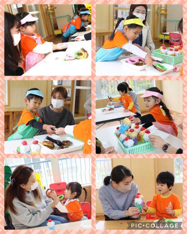 最初は、保護者の方のお手伝いもありましたが、どんどん子ども達同士で商品のやり取りをする姿が見られるようになり、楽しいお店屋さんごっこになりました✨