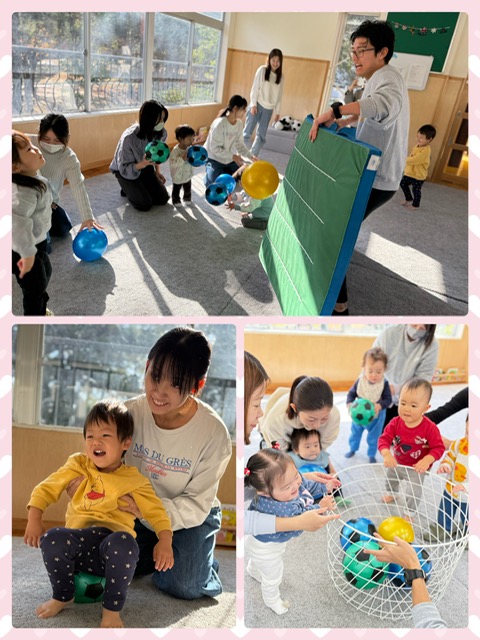 お母さんとボールを転がしたりカゴにボールを入れたり上手に出来ました👏