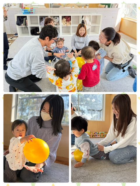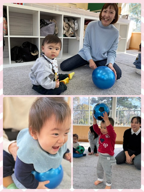 0歳児さんと1歳児さんと分かれてボールを使って身体を動かしました🥎