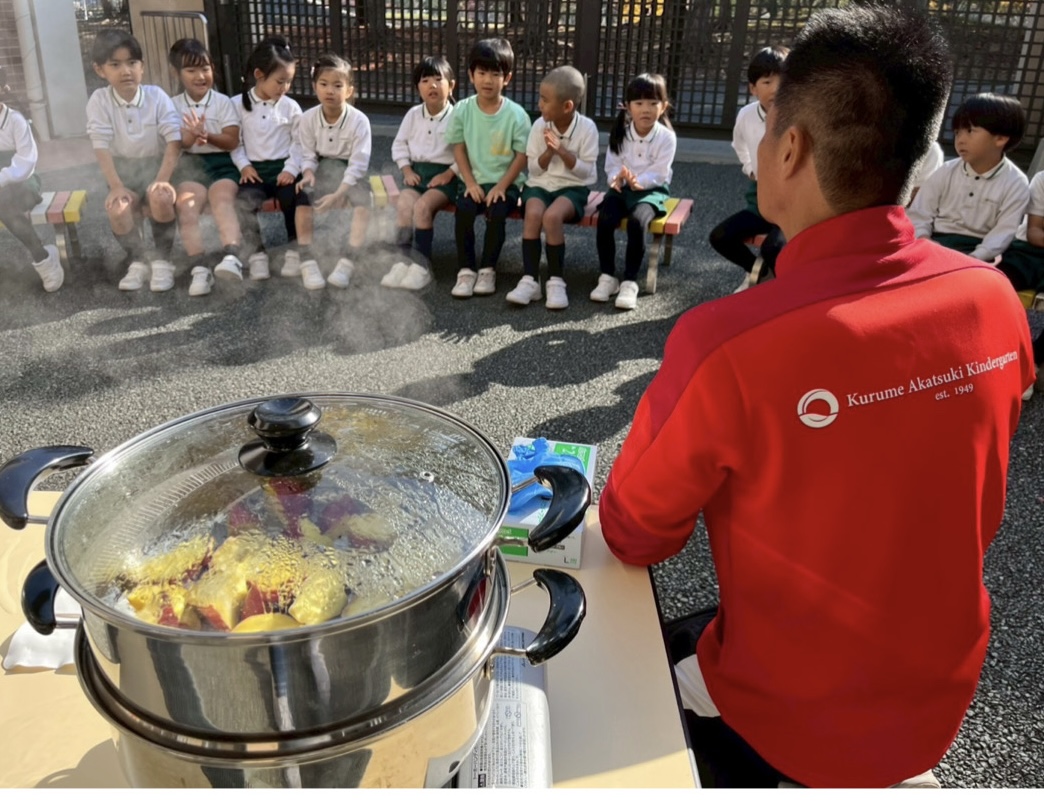 蒸かし芋が完成するまで皆で『やきいもグーチーパー』を熱唱🎵