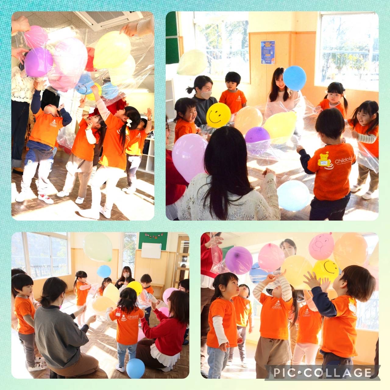 丸い風船やクネクネした風船を上手に飛ばしていた子ども達☺️