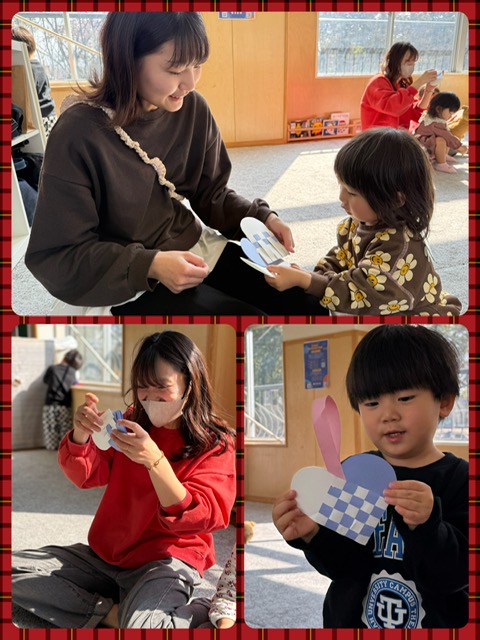 なかなか編み進めるのが難しくお母さん達も苦戦しながらも真剣に作ってくれました🥲