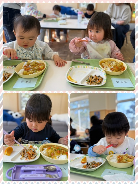 幼稚園の美味しい給食をKodomottoのお母さん子ども達にも食べてもらいました🍴