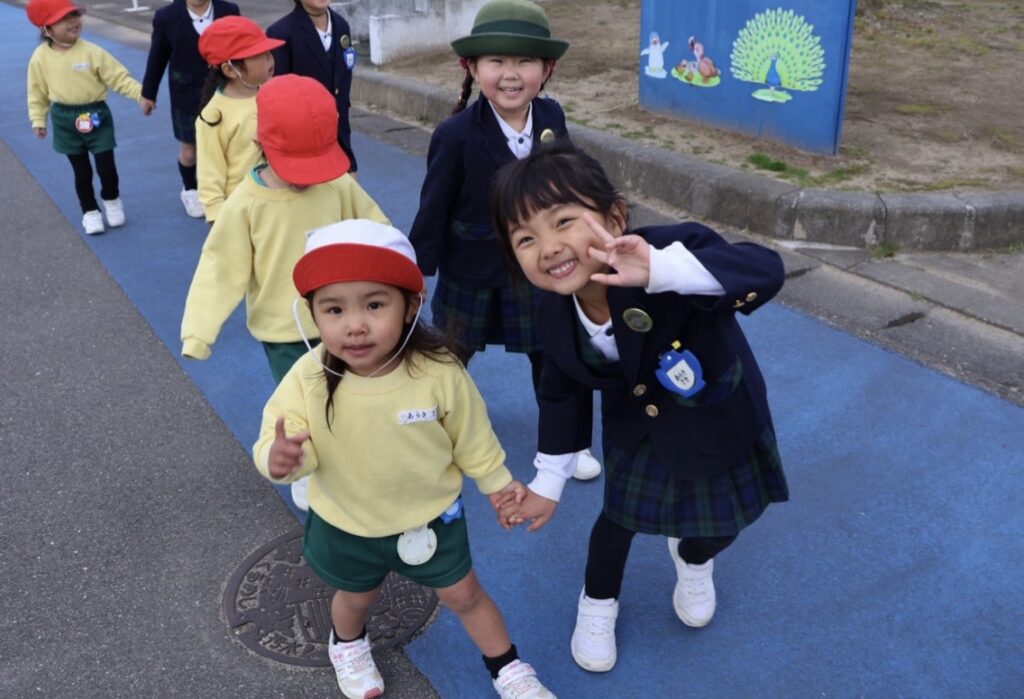 年長組のお兄さんやお姉さんと手を繋いで鳥類センターへレッツゴー✊